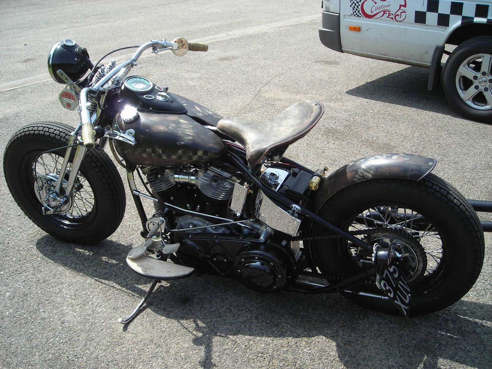 Today my original panhead turned up for some work. It pretty much as i built her and it got sold to Pete. He has got a problem with his leg and at time i said if he couldn't start her i wouldn't sell. Anyway having shown him what to do, he manages to fire her 1st time virtually every time. He's had many years and has proved to be ultra reliable and is starting to age well. Still got a bit of a soft spot for her. She won a best paint award at some show which is very amusing considering its a rattle can job.